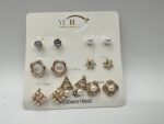A stylish 7-piece earring set featuring a mix of studs and mini hoops—perfect for everyday wear, mixing and matching, or layering for a trendy look.