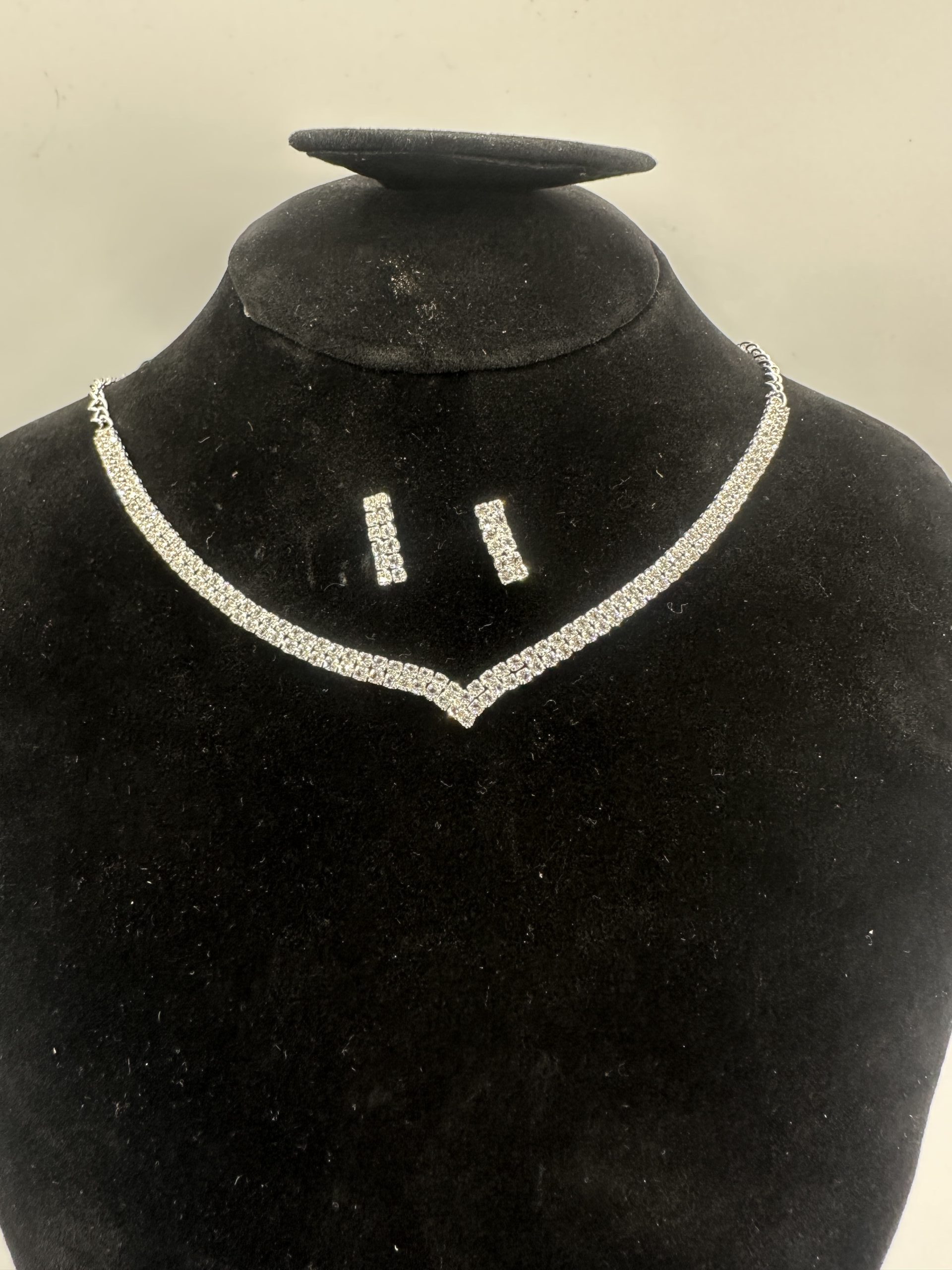 This radiant jewelry set features a shining short necklace paired with matching earrings, designed to add a touch of sparkle to any outfit. Perfect for parties, weddings, or a stylish everyday look.