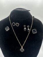 Add a touch of elegance with this black and gold locket and earring set. Perfect for both casual and formal looks, it’s a stylish accessory for any occasion.