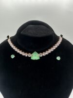 Starry Shine Green Stone Necklace Set – Short Necklace with Matching Earrings
